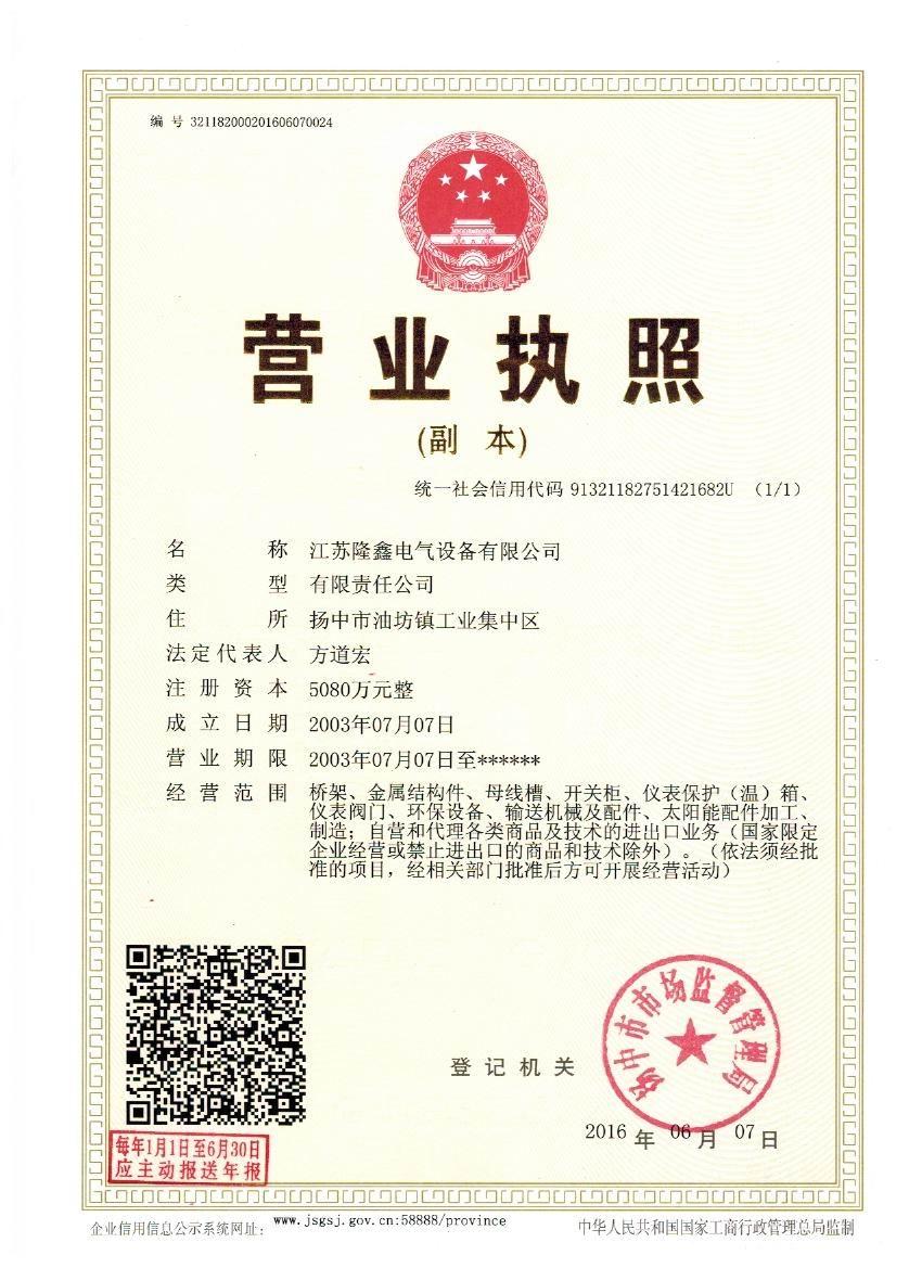 江蘇隆鑫電氣設(shè)備有限公司(原揚(yáng)中市隆鑫電器設(shè)備有限公司)位于風(fēng)景秀麗的江南古城 ---- 鎮(zhèn)江東部揚(yáng)子江畔,水陸交通便利。 本公司是中石化網(wǎng)絡(luò)成員企業(yè),是揚(yáng)中橋架企業(yè),工業(yè)管道閥門、儀表管配件、母線槽、匯線橋架、玻璃鋼制品的專業(yè)生產(chǎn)廠家。 我公司一貫以經(jīng)營以管理為保證、以科技進(jìn)步為動(dòng)力,使產(chǎn)品的市場占有率不斷提高,公司正持續(xù)、穩(wěn)步、健康地向前發(fā)展,秉循“創(chuàng)造完美、服務(wù)用戶、奉獻(xiàn)社會(huì)”的經(jīng)營觀念,本公司生產(chǎn)的儀表管件及閥門系列產(chǎn)品、母線槽、電纜橋架幾乎覆蓋全國31個(gè)省、市、自治區(qū)的化工、冶金、交通、輕...